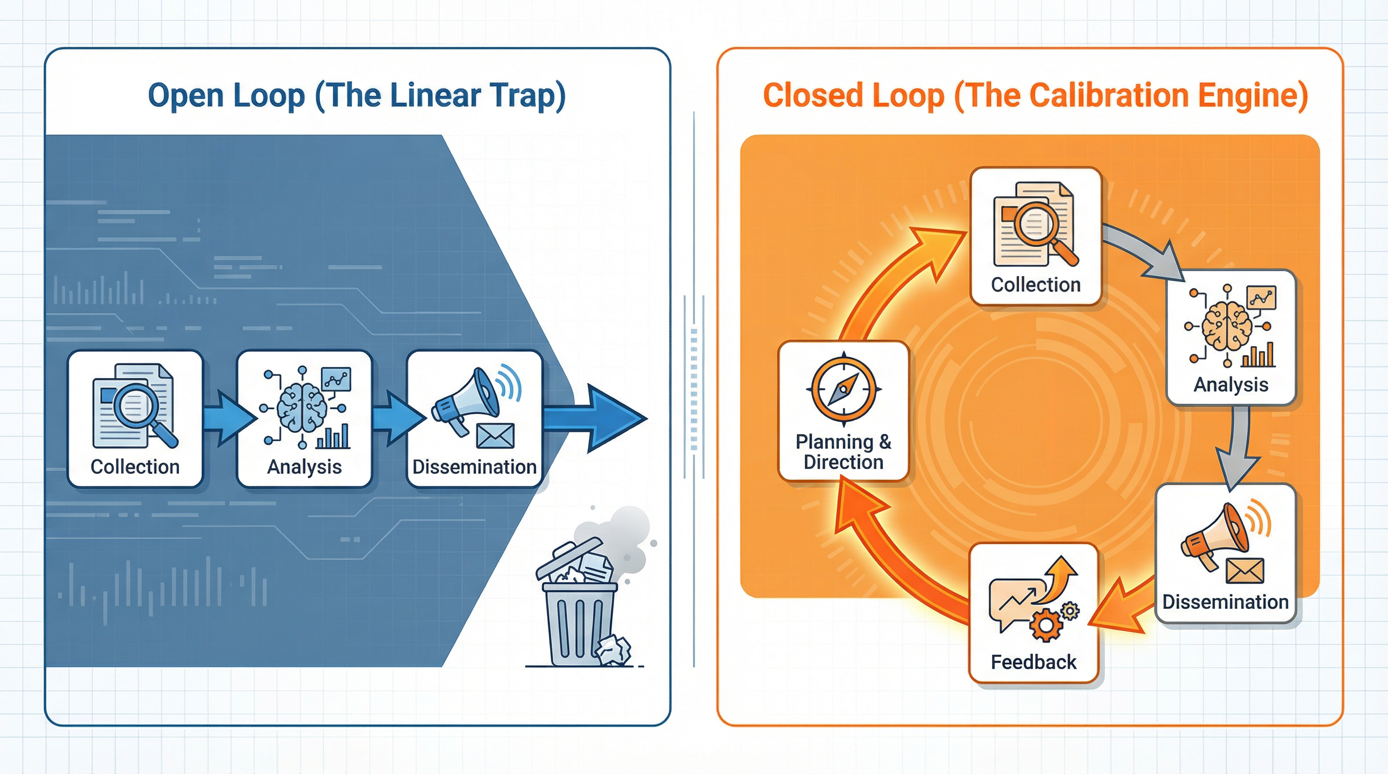 We call it the Intelligence Cycle. It is not a straight line. It does not terminate at an inbox.