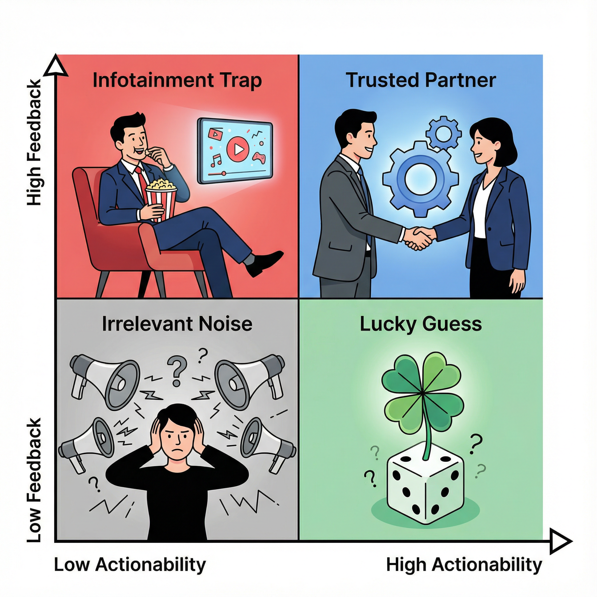 1. The Infotainment Trap (High Feedback / Low Actionability): You produce a deep dive on a threat irrelevant to your sector. The CISO replies, "Excellent analysis!" because it was interesting. But since the business has no exposure, nothing changes. You provided entertainment, not risk reduction.